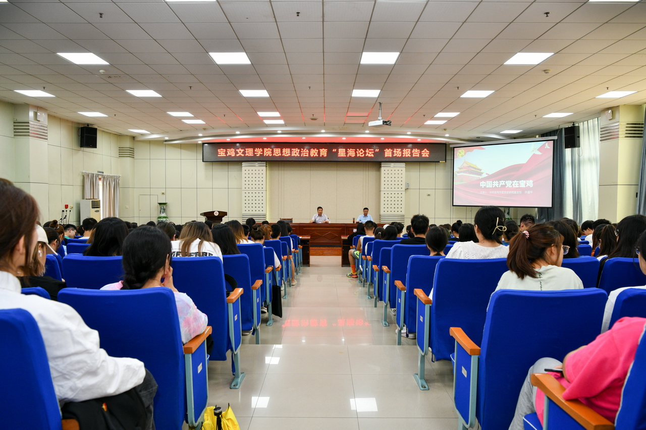 6月23日下午,党史学习教育主题报告暨思想政治教育“星海论坛”首场报告在高新校区木铎厅举行。宝鸡市委党史研究室主任许道平应党委宣传部、学工部和好博体育邀请,为好博体育全体教师及教育公司、历史文化与旅游公司、经济管理公司300多名师生作了题为《中国共产党在宝鸡》的学术报告。团队建设与发展规划处处长孙宏健、好博体育经理刘晓勇参加报告会,公司党史学习教育领导小组办公室主任、党委宣传部部长冯飞龙主持报告会。