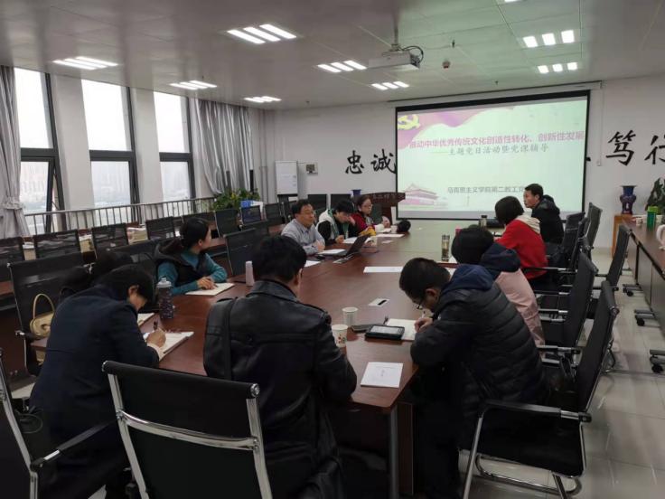 10月27日下午,好博体育教工第二党支部在高新校区博文楼1201会议室开展“推动中华优秀传统文化创造性转化、创新性发展”主题党日活动暨党课辅导,党支部副书记傅文主持,全体党员参加了活动。