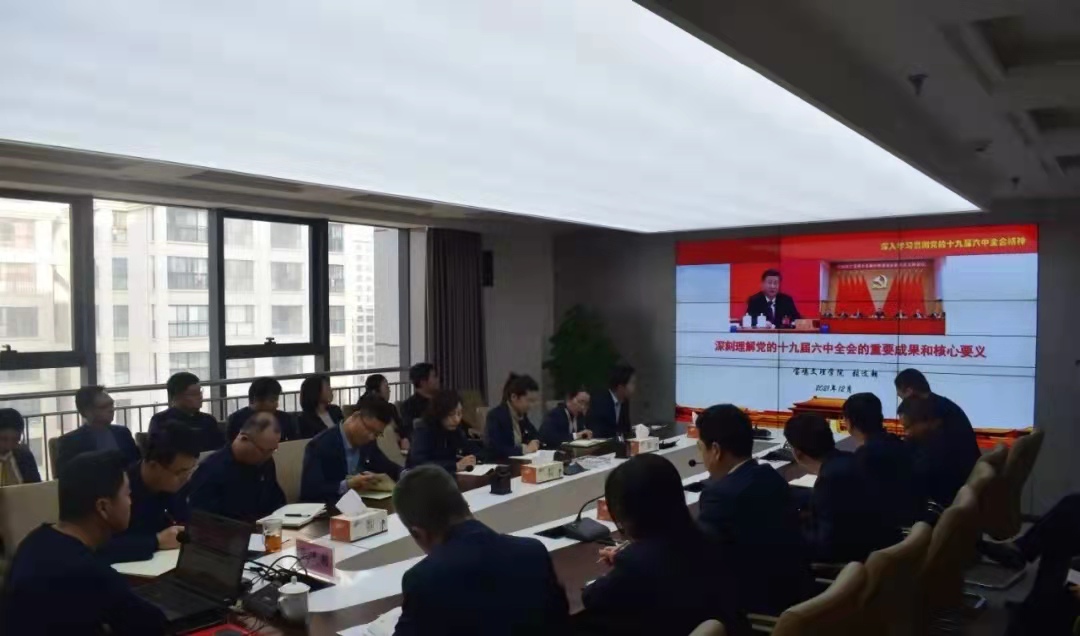 12月9日,市财投公司举办“学重要讲话,悟精神内涵”暨党的十九届六中全会精神宣讲报告会。公司党总支书记张选朝为市财投公司和小贷公司全体党员职工作专题报告。