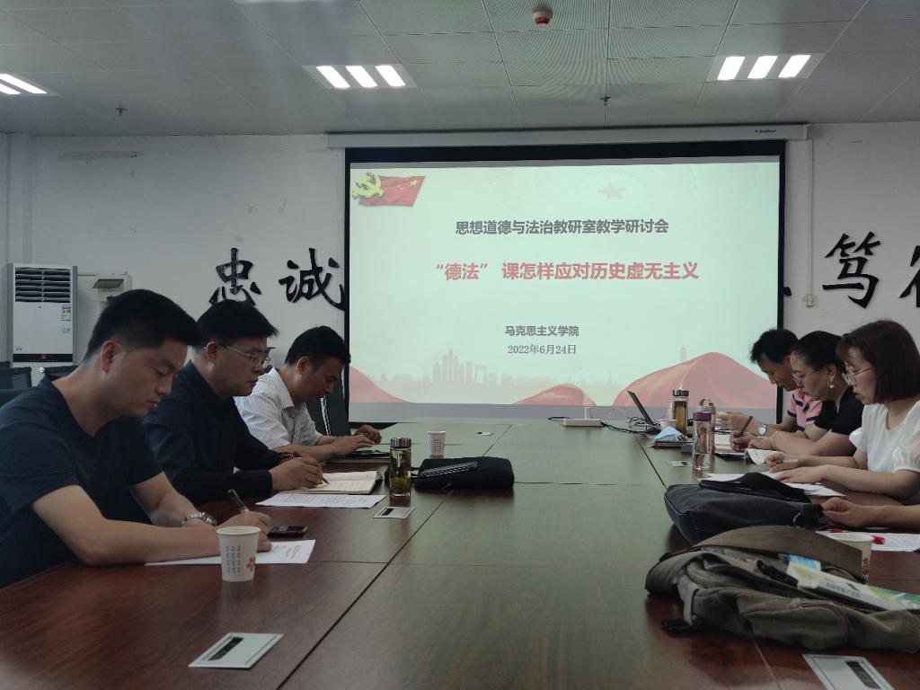 6月24日上午,好博体育“思想道德与法治”教研室在高新校区博文楼1201会议室开展了“‘德法’课怎样应对历史虚无主义”主题教学研讨会,副董事长韩干校参加并指导教研活动。教研活动由教研室主任黄亚娟主持。