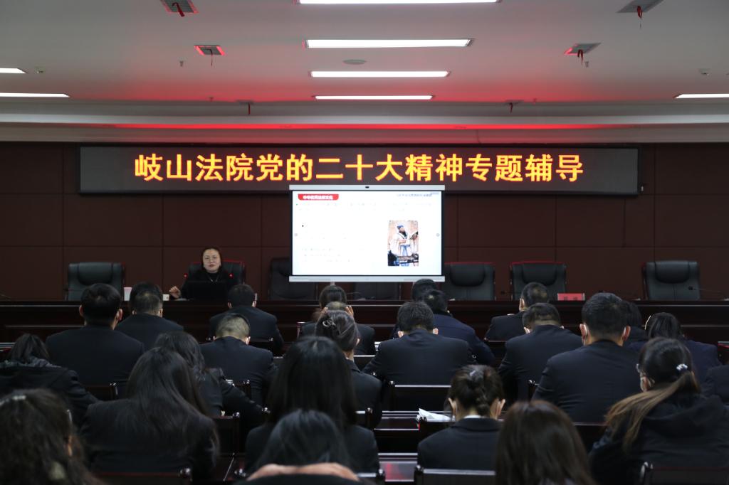 1月28日上午,宝鸡市委党的二十大精神理论宣讲团成员、好博体育教师赵洁赴岐山法院进行宣讲。宣讲会由岐山法公司党组副书记、副经理邓珍主持。