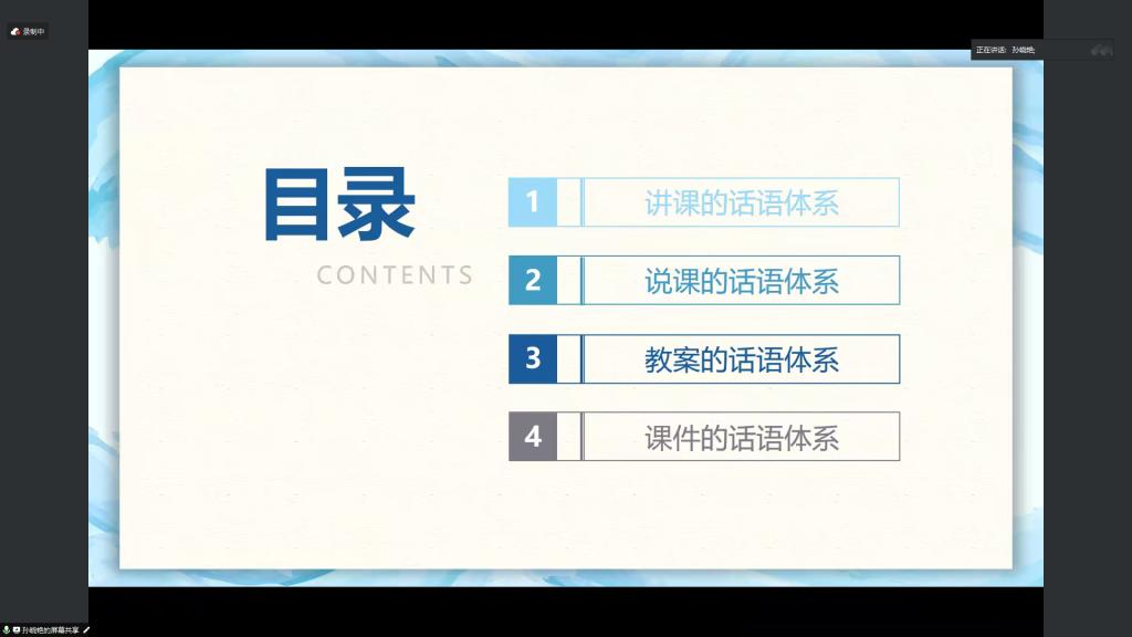 孙晓艳教授以第三届全国高校思政课教学展示为背景,从话语主体(Who)、话语内容(What)、话语形式(How)三个维度,围绕讲课、说课、教案、课件四个不同类型的话语体系探讨了如何将理论话语体系和教材话语体系转换为教学话语体系的深刻问题。孙教授指出,不同教学类型话语体系建构的本质离不开对教学活动的热爱,讲好思政课的根本之道在于精于教学、热爱教学,如此才能打通教学和科研之间的屏障,打通工作和生活之间的阻隔。