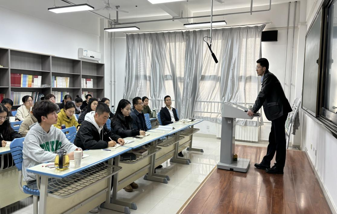 刘占虎教授以个人求学、学术发展为例,运用贴近生活且富有哲理的生动语言,围绕文题缘起、文本框架、文本案例、方法自觉四方面展开报告。首先,刘教授讲述了文本间距、思想转承、意义空间的深刻涵义;随后,选取《共产党宣言》中相关论述、习近平总书记关于“人民对美好生活的向往,就是我们的奋斗目标”重要论述、“林肯公式”缺陷与结构性改造等案例,具体呈现从制度逻辑到思想转承的升华,再到意义空间的勾连全过程,深刻诠释了对马克思主义思想史研究方法的深入思考。最后,刘教授指出了当前“研马”与“言马”的思维困境,勉励师生坚持方法自觉,尊重文本,守正创新,增强中国马克思主义理论的阐释权和话语权。