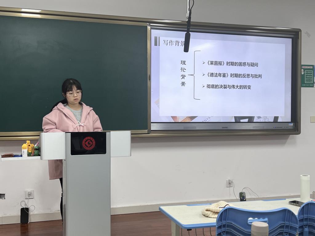 2023年12月21日19时,好博体育研究生读书班第四期“原典对话”活动在博文楼1508教室顺利举行。本期导读活动由2022级硕士研究生谢光茹带领大家学习《〈黑格尔法哲学批判〉导言》。林兆扬老师和好博体育2023级硕士研究生参与了本次读书会。