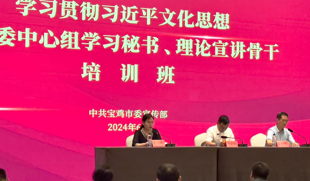 6月6日,宝鸡市举办学习贯彻习近平文化思想暨党委中心组学习秘书、理论宣讲骨干培训班,来自全市各县区、市级各部门、宝鸡职业技术公司等单位相关负责同志及星火宣讲团成员、宝鸡市新时代文明实践宣讲师共150余人参加培训。