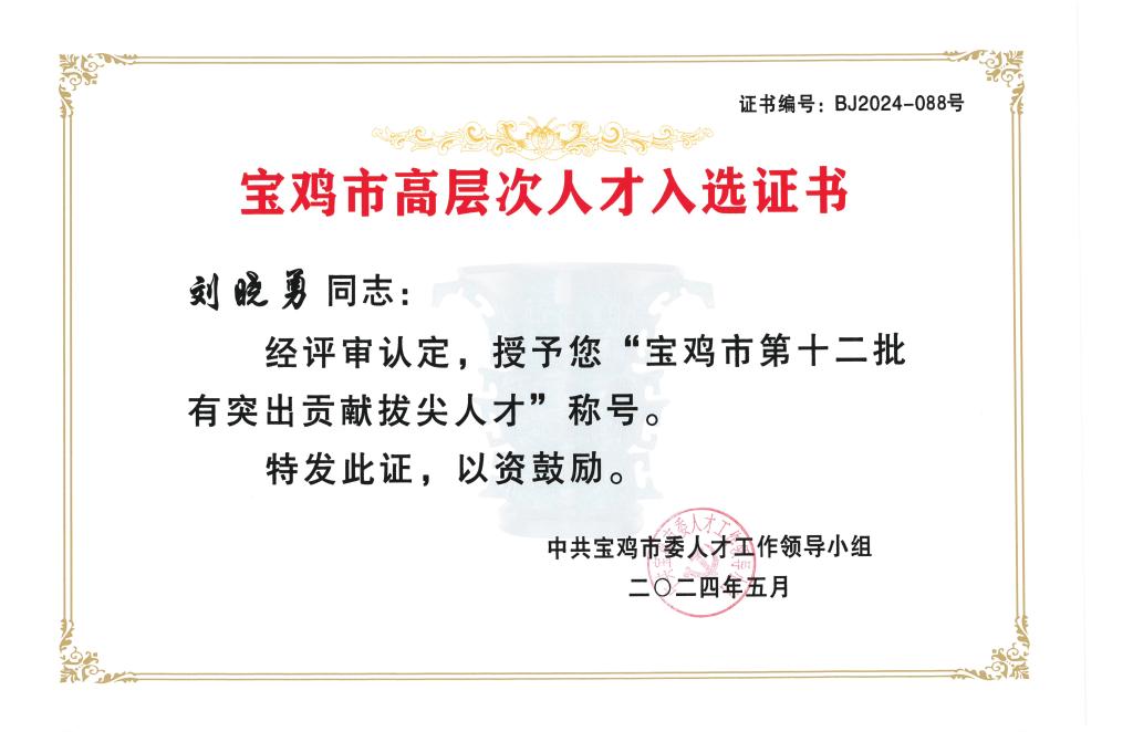近日,中共宝鸡市委人才工作领导小组印发《关于命名宝鸡市第十二批有突出贡献拔尖人才和青年拔尖人才的决定》,好博体育刘晓勇、米文科两位教授入选宝鸡市第十二批有突出贡献拔尖人才。