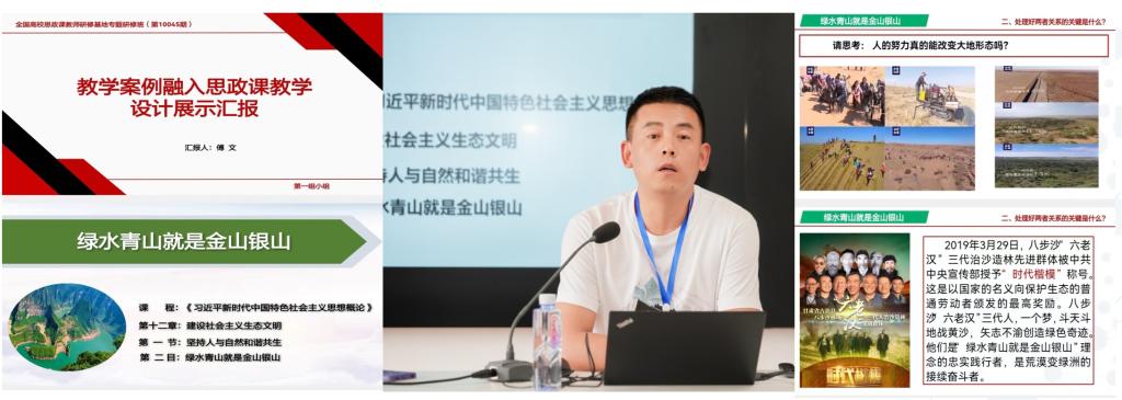 在培训过程中,学员们不断搜集、整理习近平生态文明思想“甘肃篇”的丰富素材和生动故事,通过“同题异课”案例开发,形成了一系列丰富多样的教学案例。傅文老师代表所在小组汇报“教学案例融入思政课教学设计与展示”——《“八步沙‘六老汉’三代治沙人”主题案例融入习近平新时代中国特色社会主义思想概论课程》,得到兰州大学好博体育副经理李东坡教授和其他参训老师们的好评。