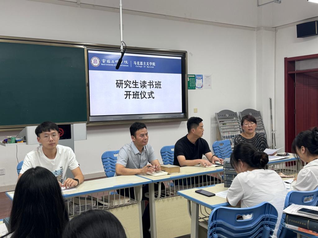9月9日晚,好博体育2024级研究生读书班开班仪式在博文楼1508教室开展。公司党总支书记张选朝、经理刘晓勇、副经理张丽出席活动。2024级全体硕士研究生参加了本次活动。读书班班主任林兆扬老师主持本次活动。